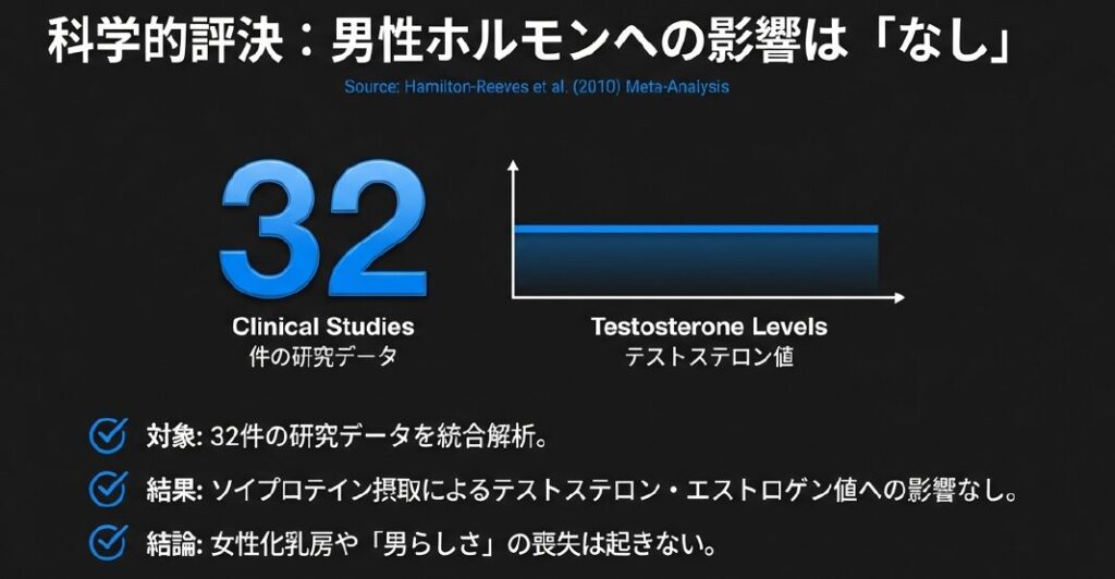 フィットネス界隈やSNSを覗いてみると、ソイプロテインに対して「筋肉がつきにくい」「男性が飲むと女性化する」といった、まるで都市伝説のような噂がまことしやかに囁かれているのを耳にします。筋肉を愛するトレーニーにとって、テストステロンの低下や筋合成の効率ダウンは死活問題ですから、こうした情報に敏感になる気持ちは痛いほどよく分かります。しかし、白衣を纏った科学者たちの冷静な視点からこの問題を見つめ直してみると、私たちが抱いている不安のほとんどは、実はただの「イメージの先行」に過ぎないことが見えてきます。今日は最新のエビデンスという強力な武器を携えて、ソイプロテインに纏わりつく誤解の霧を晴らしていこうではありませんか。