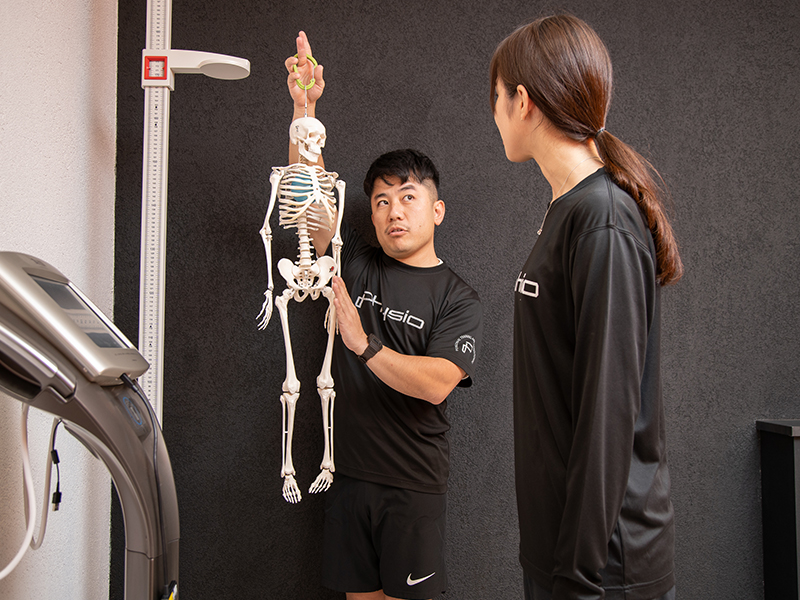 次に初期評価! 呼吸や姿勢、動作など普段行っている仕草を評価し問題点を発掘します。