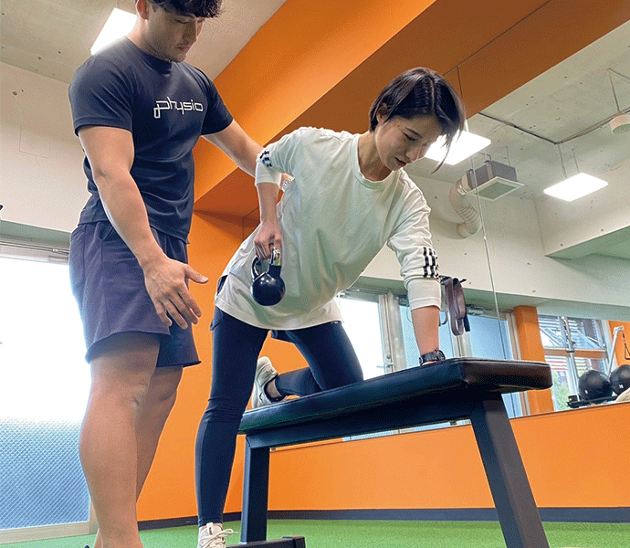一人じゃ継続できない、何をすれば良いかわからない。そんな悩みを持った人も多いのではないでしょうか。PHYSIOでは専門的な知識をもったトレーナーがマンツーマンでトレーニングを担当します。痛み改善、ボディメイク、動きづくりなど身体のお悩みなら何でもお任せください。パフォーマンスの向上という面では実際にプロのアスリートにも多くご利用いただいています。本物の知識と経験に基づいて最高の体験をお届けします。