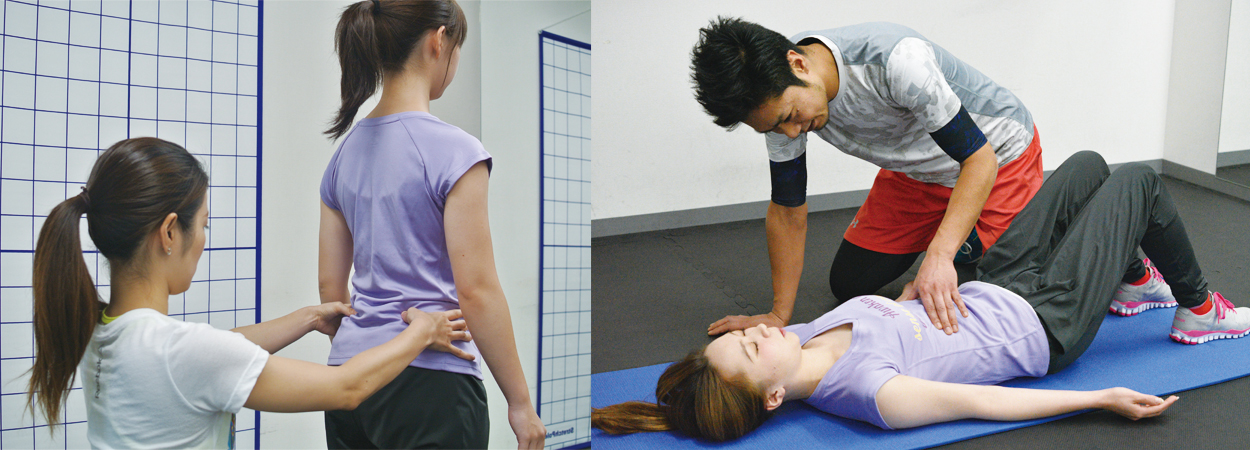 姿勢・呼吸評価といっても猫背や反り腰といった簡単な評価ではなく、今現在のお客様の状態やその背景を考え、皮膚や関節動態、どういう動き方をしているから今の状態になっているのかを紐解き、その姿勢を改善するエクササイズとダイエットエクササイズを同時に行うことで、健康的に姿勢を矯正いたします。